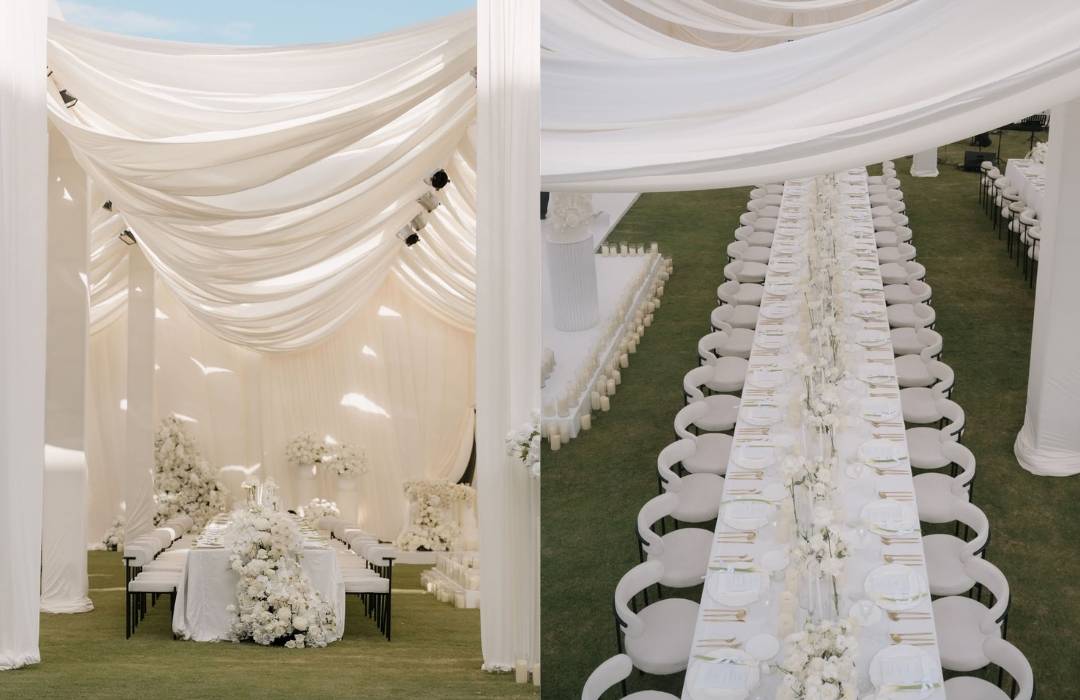 Walaupun tidak menjadi bagian warna pelangi, warna putih dianggap sebagai warna sakral sebuah pernikahan. Tak hanya itu, karena sudah mendarah daging dalam dunia wedding, warna putih menjadi warna klasik yang tak lekang oleh waktu. Maka jika kamu tak ingin memilih drapery yang colorful, warna putih tetap bisa menjadi the ultimate choice untuk dekorasi drapery-mu. Warna ini has it all. Mewah, suci, dan trendy, di mana warna ivory atau white juga termasuk dalam warna yang diprediksi sebagai warna trendy untuk wedding di tahun 2026.