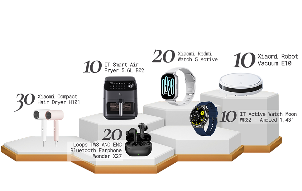 Transaksi sekarang dan menangkan HADIAH LANGSUNG berupa iPhone 16, LED TV, gadget accessories, home appliances, serta hadiah menarik lainnya di Jackpot Land. Dengan pembagian hadiah sebagai berikut: 100 hadiah di hari Jumat, 150 hadiah di hari Sabtu, dan 150 hadiah di hari Minggu.*