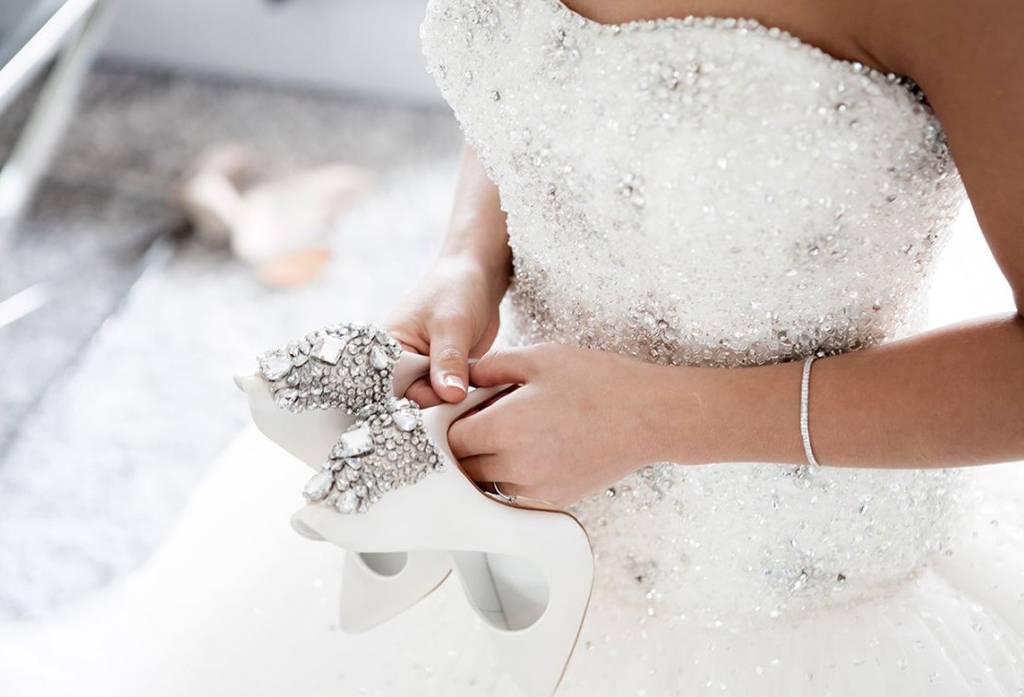 Apakah Anda akan mengenakan gaun pengantin panjang atau hanya sebatas mata kaki, mengenakan sepatu pengantin terlebih dahulu akan memudahkan dan mempercepat Anda mengenakan gaun pengantin Anda. Tentu saja, Anda bisa meminta bantuan teman, bridesmaid, atau wedding organizer Anda untuk membantu Anda memakaikan sepatu agar Anda tidak dengan sengaja menginjak gaun pengantin Anda. (SW)