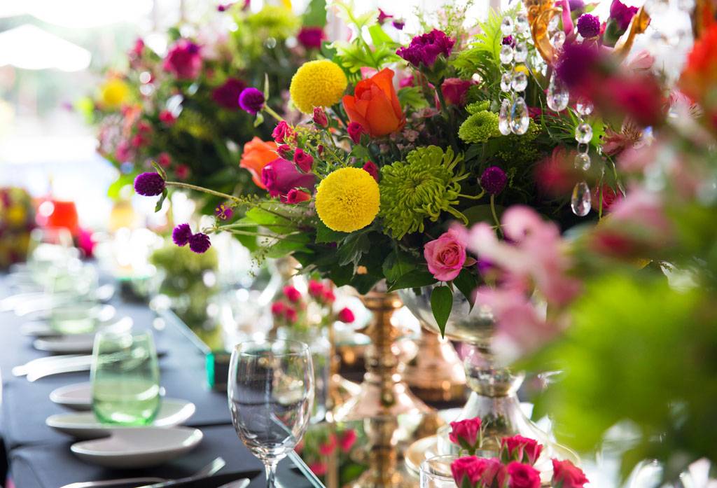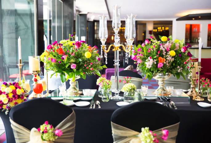 Warna-warna cerah mendominasi. Pada bunga-bunga yang menghiasi meja, pada minuman dingin yang menyegarkan, juga pada bunga di genggaman.