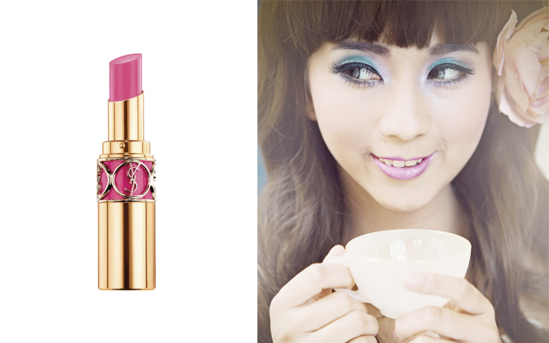 Lipstik dengan warna fuchsia cocok dengan warna kulit Sasya. Memberi kesan yang seksi dan segar.
