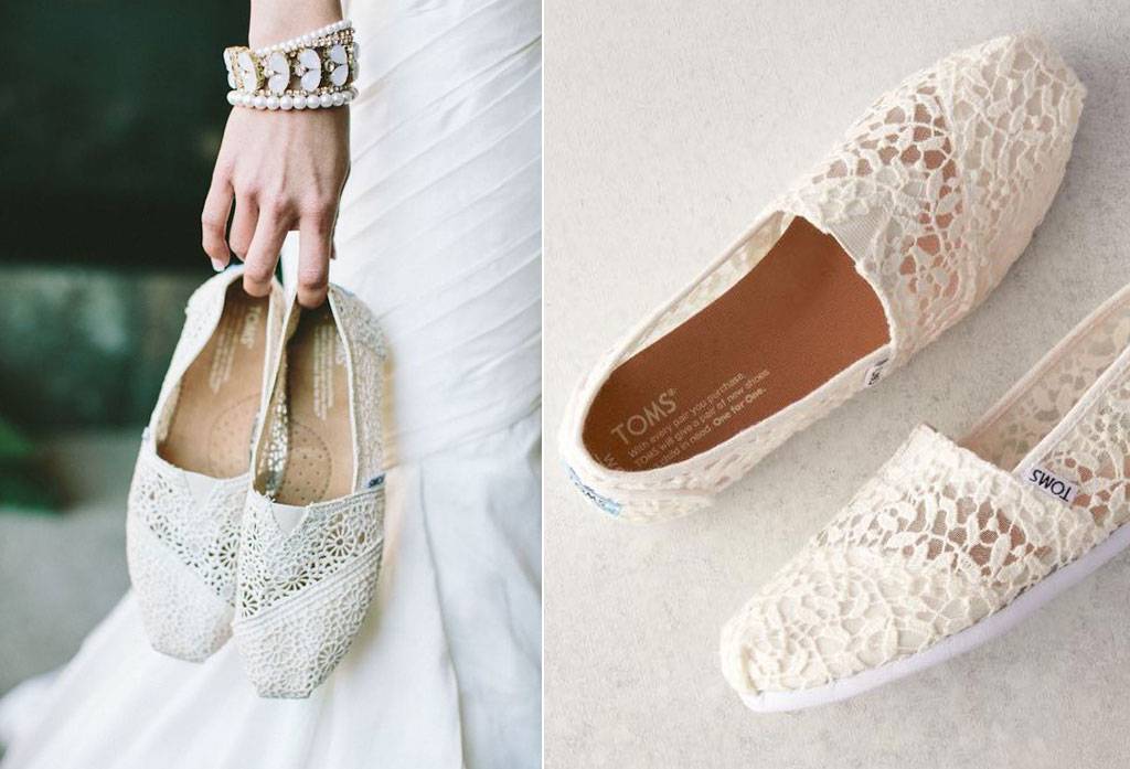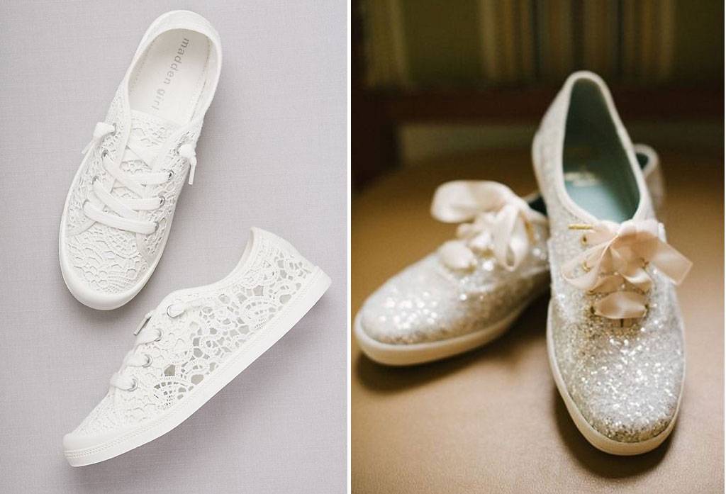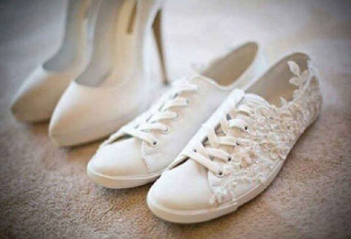 Tidak tahan berlama-lama memakai high heels yang membuat kaki lekas pegal. Calon pengantin lebih baik berpikir ulang untuk memakai sepatu hak tinggi yang justru membuat calon pengantin tidak bisa menikmati pernikahannya. Coba cari sepatu jenis lain yang akan membuat nyaman. Contohnya sepatu kasual berikut ini sebagai usulan sepatu yang tidak mengurangi kesan feminin dengan memakai gaun pengantin sekalipun.