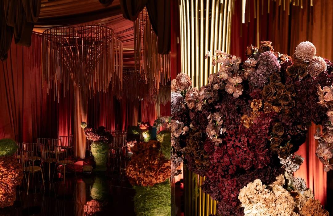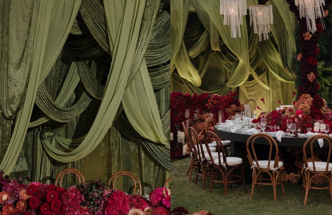 Menginginkan pernikahan yang grand dan dramatis? Kamu bisa memilih warna merah keunguan sebagai warna utama pernikahanmu. Identik dengan warna bahan beludru atau velvet, kamu bisa mendekor dinding dengan velvet atau fabric dengan warna deep burgundy ini. Tambahkan juga instalasi yang tak biasa atau sophisticated untuk menambahkan kesan unik dan megah serta penuh kemewahan.