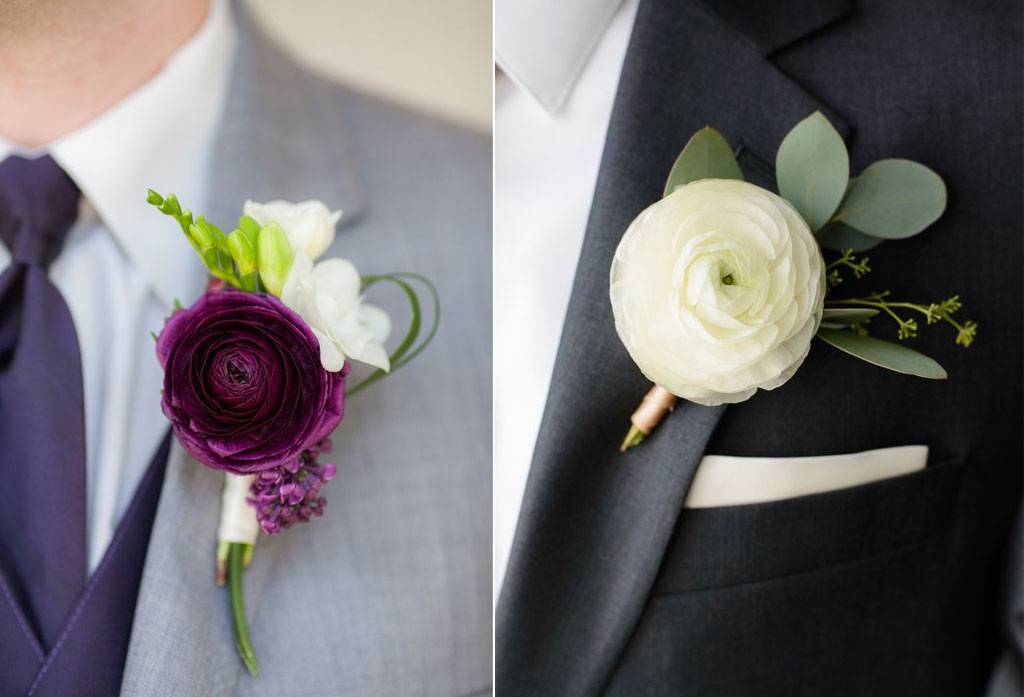 Dapat menselaraskan dasi yang sama cerahnya, sematkan pula boutonniere dengan sekuntum bunga ranunculus ungu yang tampak serasi bersama warna dasi yang dipakai. Cara lain yang dapat digunakan dengan mencocokan warna mahkota dan kemeja yang sama putihnya.