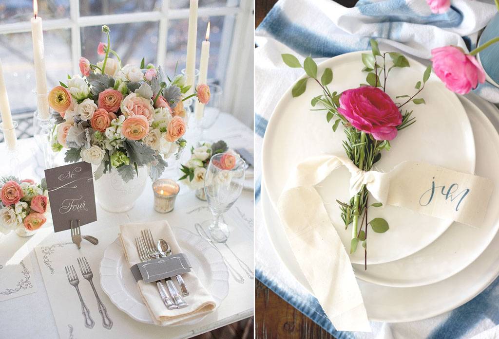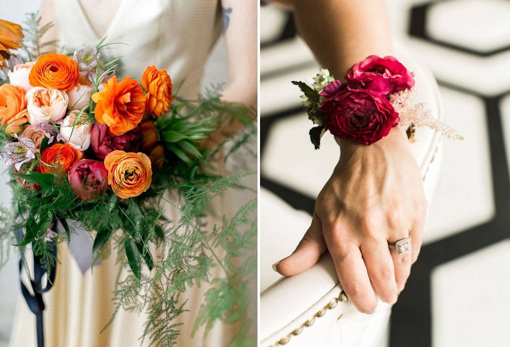 Masih satu keluarga Ranunkulaceae dengan bunga peony, anemones, claws dan edible, bunga ranunculus memiliki karakteristik pada mahkotanya yang bertumpuk penuh. Pilihan warnanya pun banyak seperti merah, kuning, pink, ungu, orange yang dapat diimpor dan bersemi setiap akhir musim semi menjelang musim panas. Indahnya bunga tersebut dapat diaplikasikan pada dekorasi pernikahan seperti contoh detail berikut.