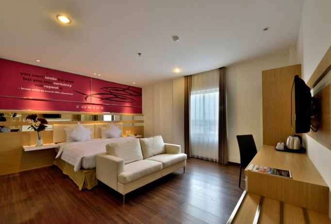 Uniknya, meski berada dibawah satu naungan management yang sama, masing-masing hotel tersebut memiliki gaya berbeda dalam penataan desain interior, maupun market yang dituju. Seperti Hotel Zodiak yang berada di dua lokasi berbeda, Bandung dan Surabaya. Di kota Kembang Bandung berkonsep cancer yang simple & easy, sementara di Surabaya lebih condong pada konsep pisces yang unik nan menarik. Lokasi kedua hotel ini sangat strategis. Sebab dekat dengan pusat perbelanjaan, perekonomian, serta bandara udara dan stasiun kereta yang mudah diakses.