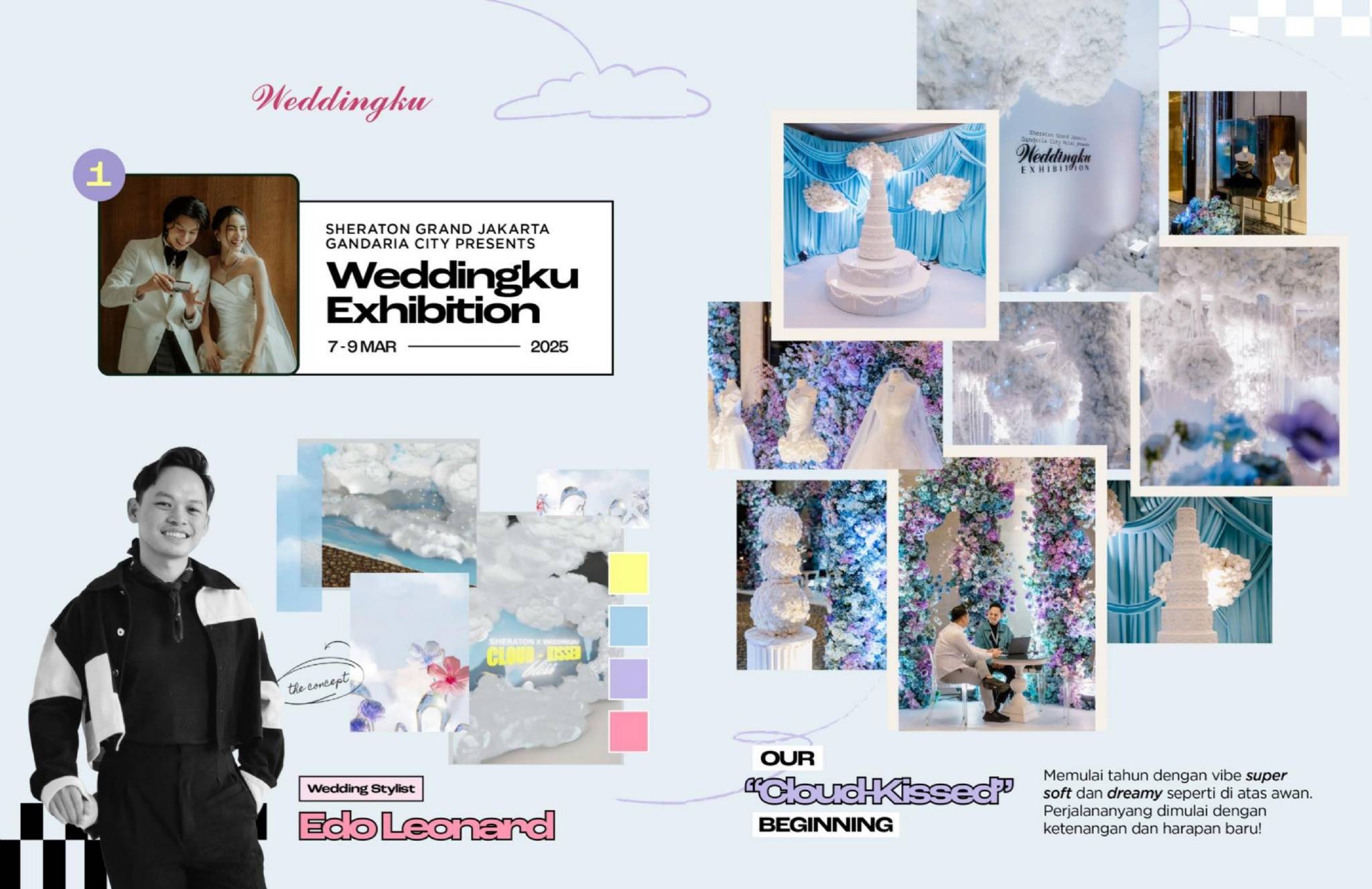 Pameran pertama dibuka lewat Weddingku Exhibition pada 7–9 Maret 2025, dengan Edo Leonard sebagai stylist yang memperkenalkan Flower Fantasy dalam balutan tema “Cloud Kissed.” Mengawali tahun dengan nuansa super soft dan dreamy, Edo menghadirkan dekor yang terasa ringan, lembut, dan seolah melayang di atas awan. Instalasi bunga yang mengalir, palet warna pastel, serta komposisi ruang yang tenang menciptakan suasana penuh harapan dan ketenangan. Sebuah awal manis untuk perjalanan pernikahan.