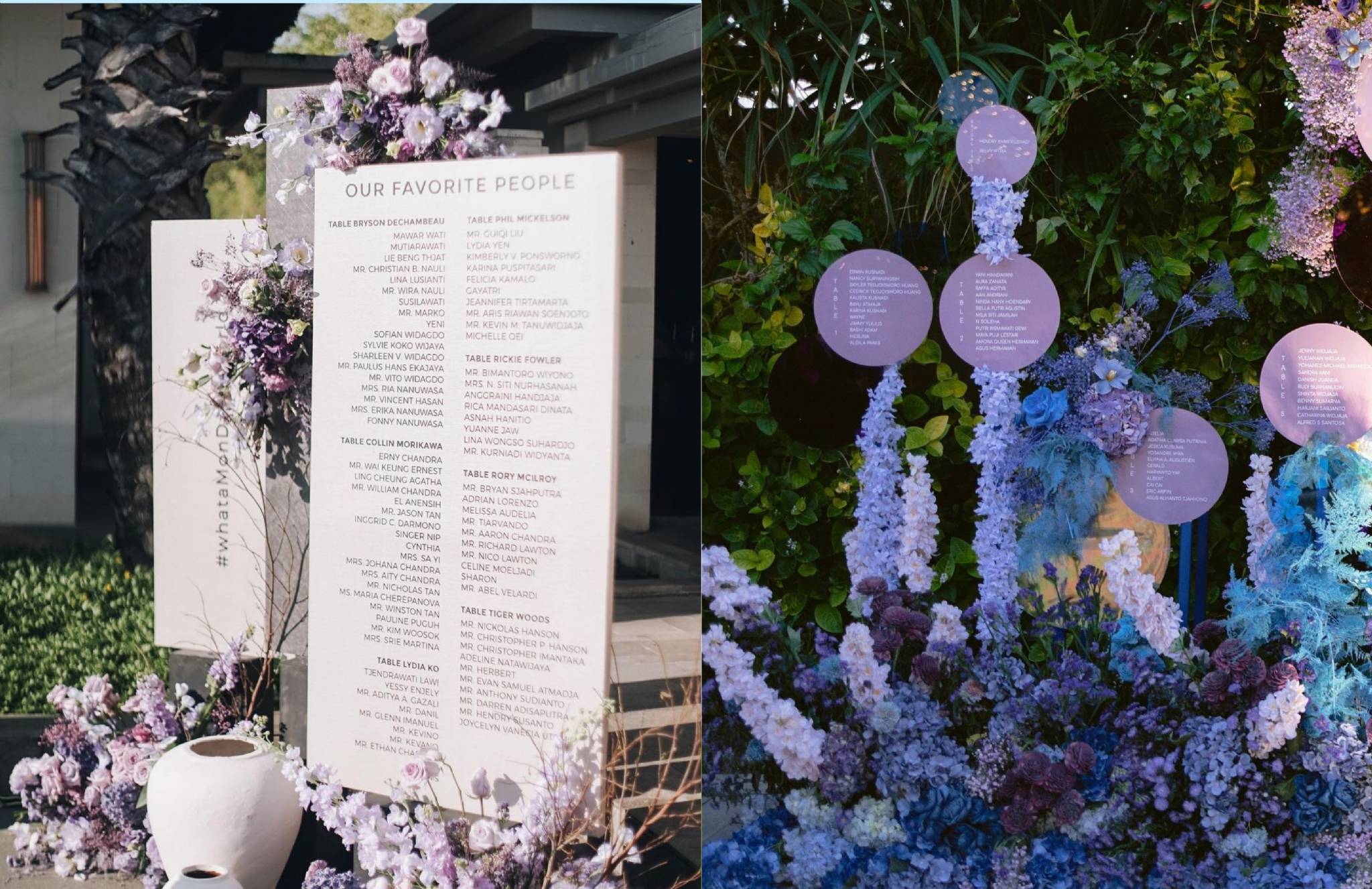 Apalagi di area terbuka, di mana zonasi meja tidak selalu terlihat jelas, seating chart menjadi penunjuk arah yang sangat membantu. Dikarenakan area luas dan terbuka, tamu bisa lebih mudah kebingungan mencari tempat duduk. Seating chart berfungsi sebagai titik fokus di area masuk. Menariknya, selain membantu navigasi, desainnya juga bisa menjadi bagian dari statement dekorasi yang memperkuat konsep wedding kamu. Jadi bukan hanya fungsional, tapi juga estetik.
