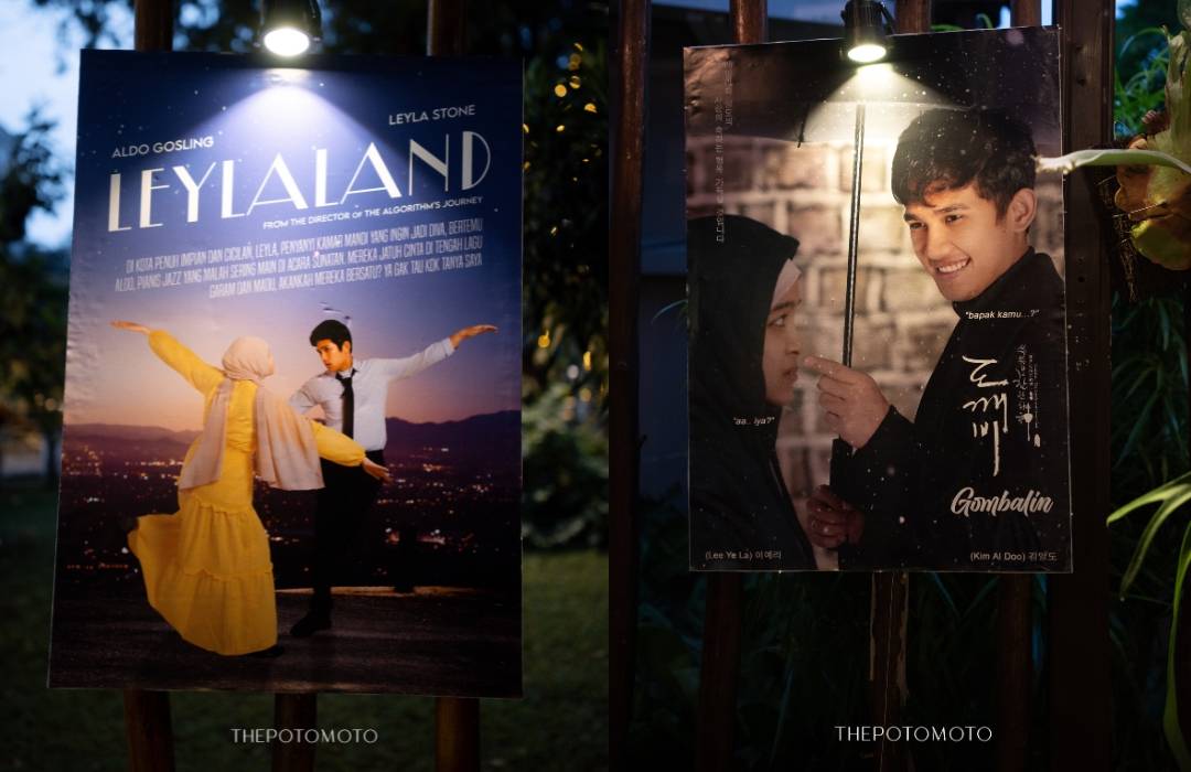 Detail unik lainnya adalah hasil foto prewedding yang dikemas layaknya poster film ternama. Judul film pun dibuat parodi, seperti La La Land yang diubah menjadi “LeyLa Land”, drama Korea berjudul Goblin pun di-tweak menjadi Gombalin. Poster-poster ini dipajang di area acara, sehingga para tamu bisa ikut menikmati dan tertawa melihat kesan humoris dari sejoli ini.