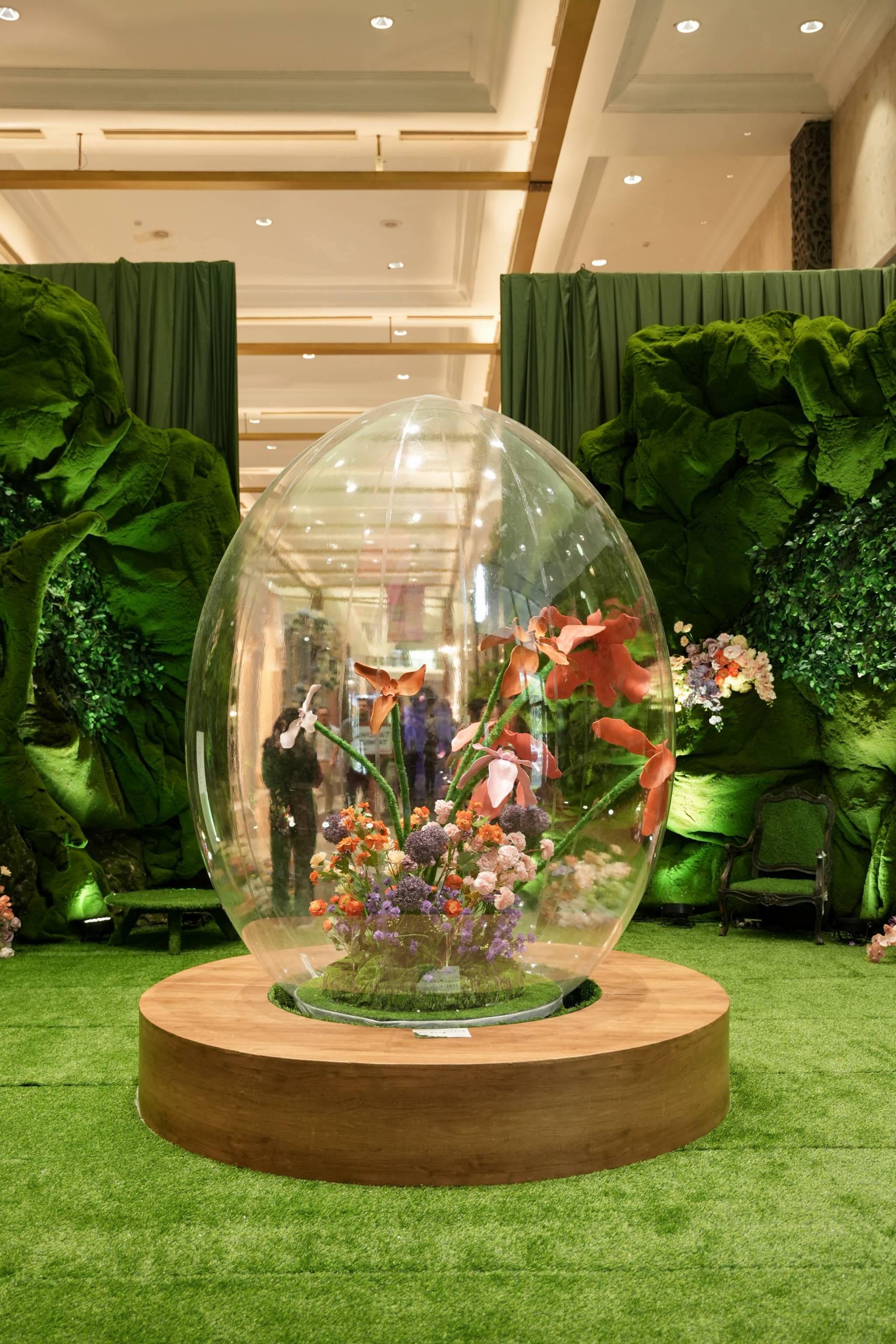 Area kedua kamu akan bertemu dengan rumput, pohon, dan dinding hijau bak hutan ajaib dengan instalasi telur transparan raksasa yang didalamnya tumbuh bunga-bunga indah warna-warni. Tak hanya itu, di area ini kamu juga akan menemukan standing lamp dan televisi berlapis rumput. Area ini diberi nama “The Egg in the Forest”. Calon pengantin diajak melangkah bersama dalam keindahan alam yang hijau, dengan soft glow-nya yang menyimbolkan kehidupan, kekaguman, serta sebuah awal yang damai.