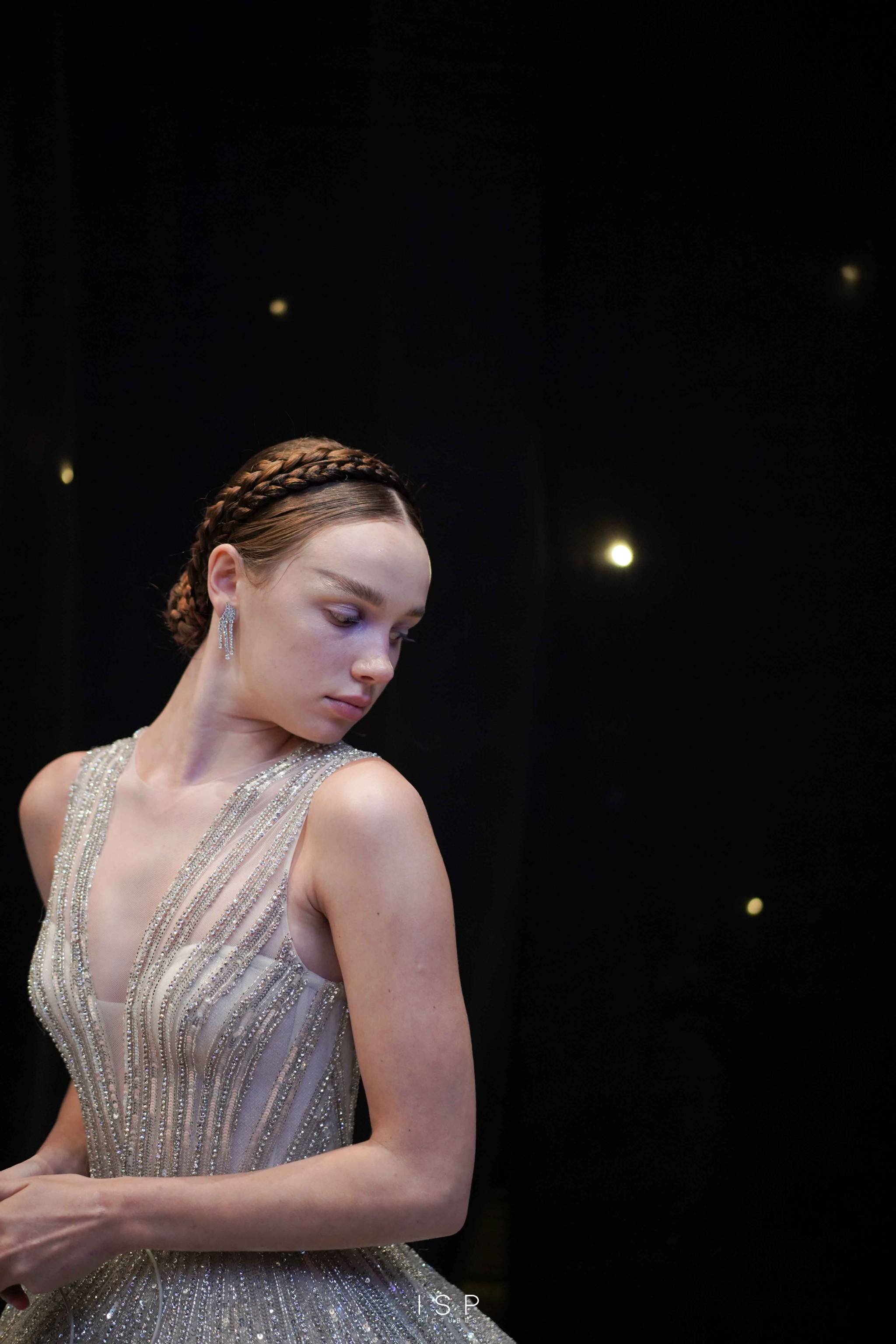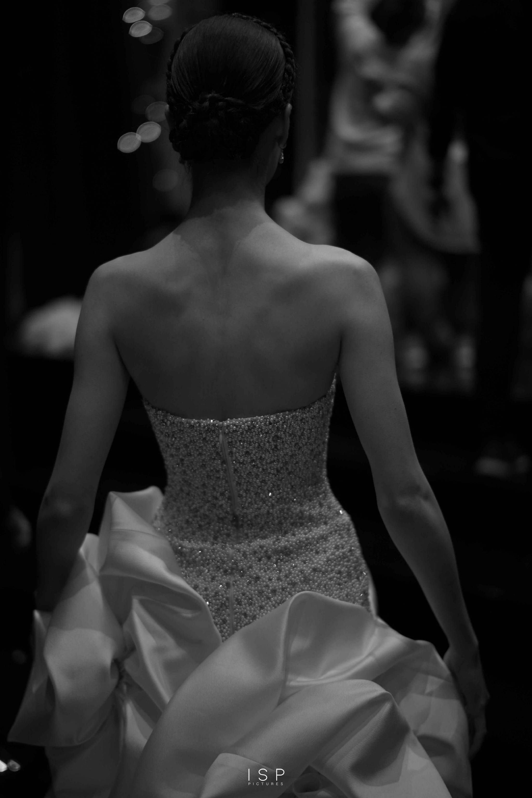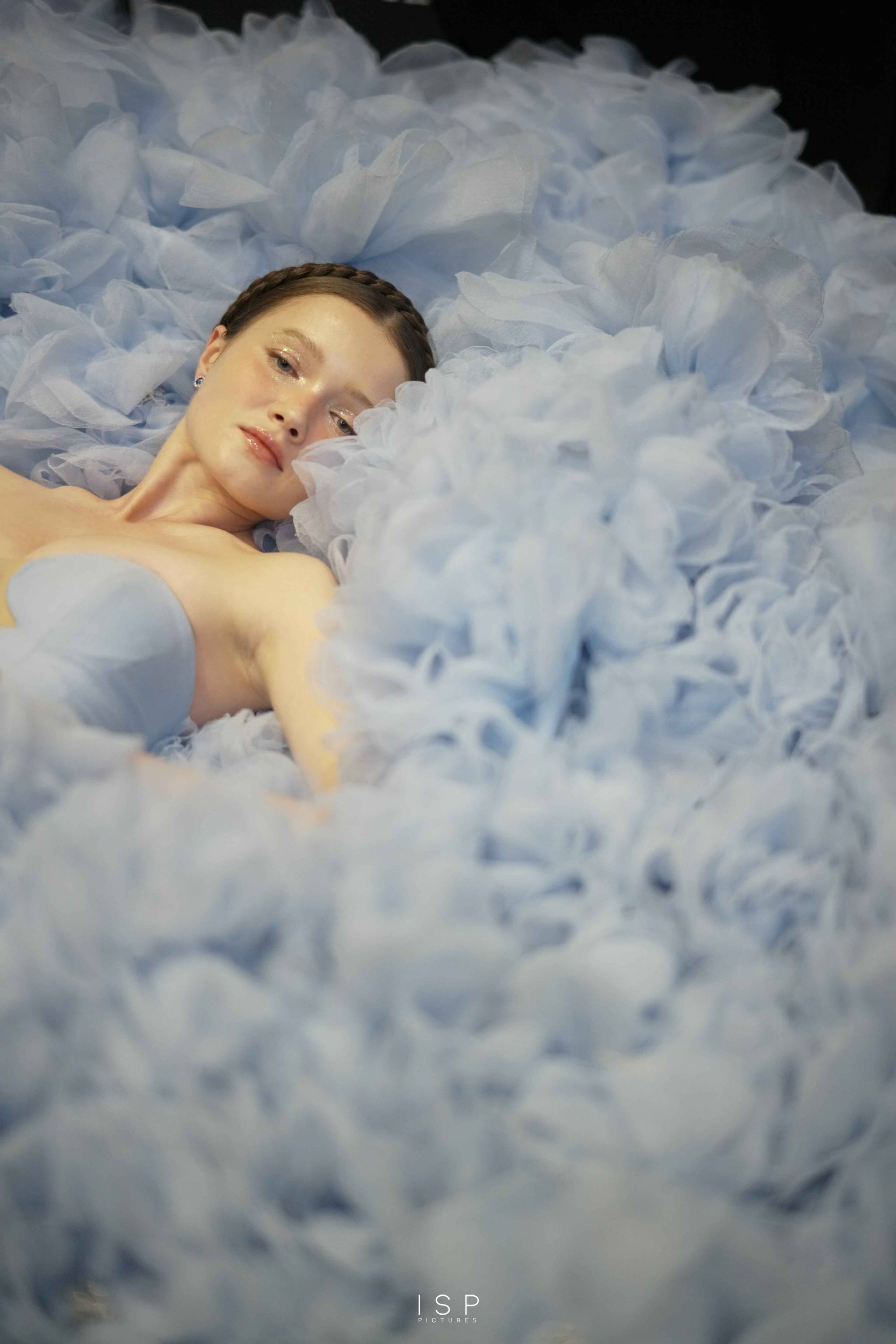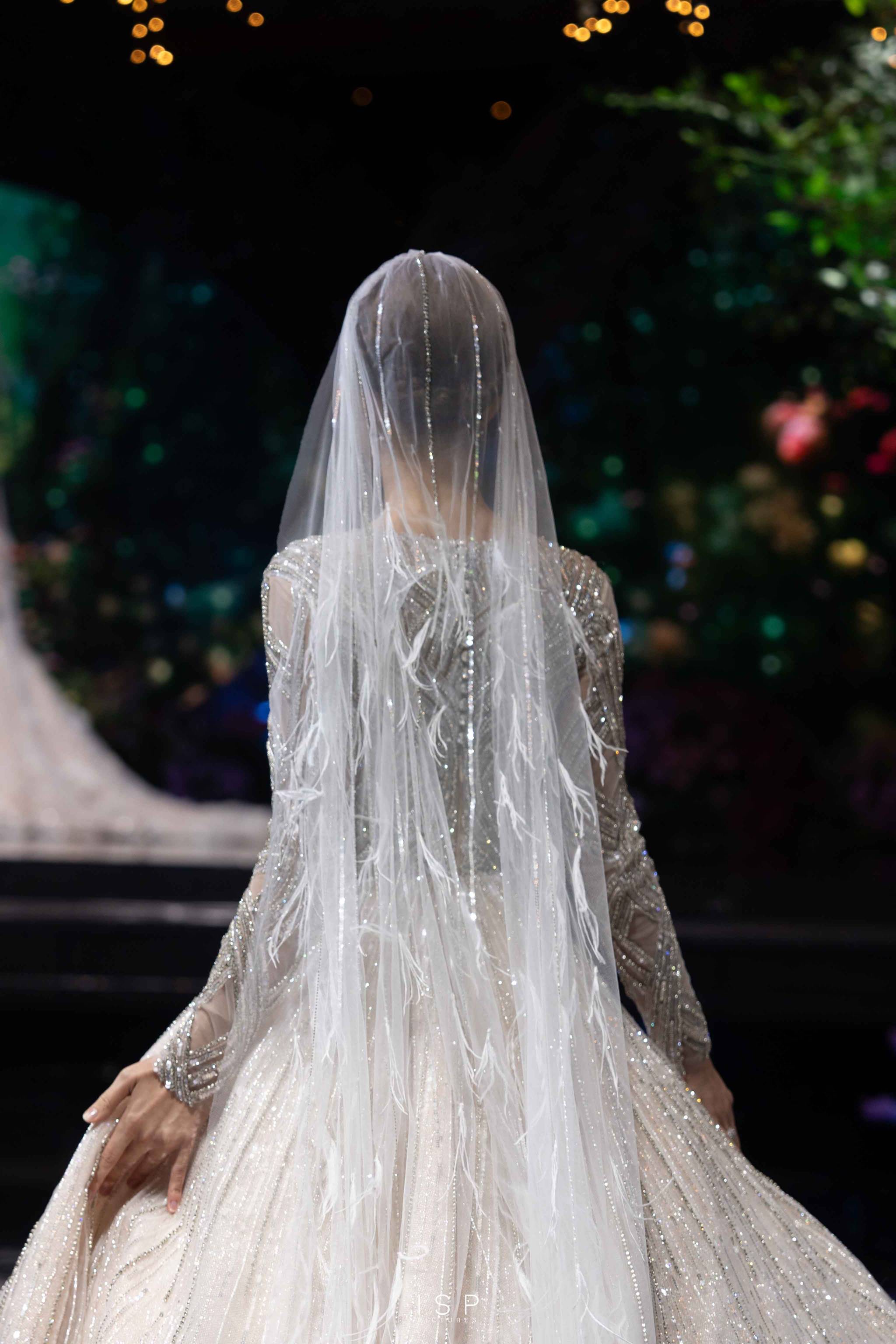 Monica Ivena yang hasil karyanya yang telah dikenakan artis luar negeri seperti Khloe Kardashian dan Taylor Swift ini, mempertunjukkan white glitter wedding ball gown, tulle dress dengan warna biru dan ungu pastel yang cantik, feather wedding ball gown yang semua koleksinya memiliki aksen bunga yang kuat.