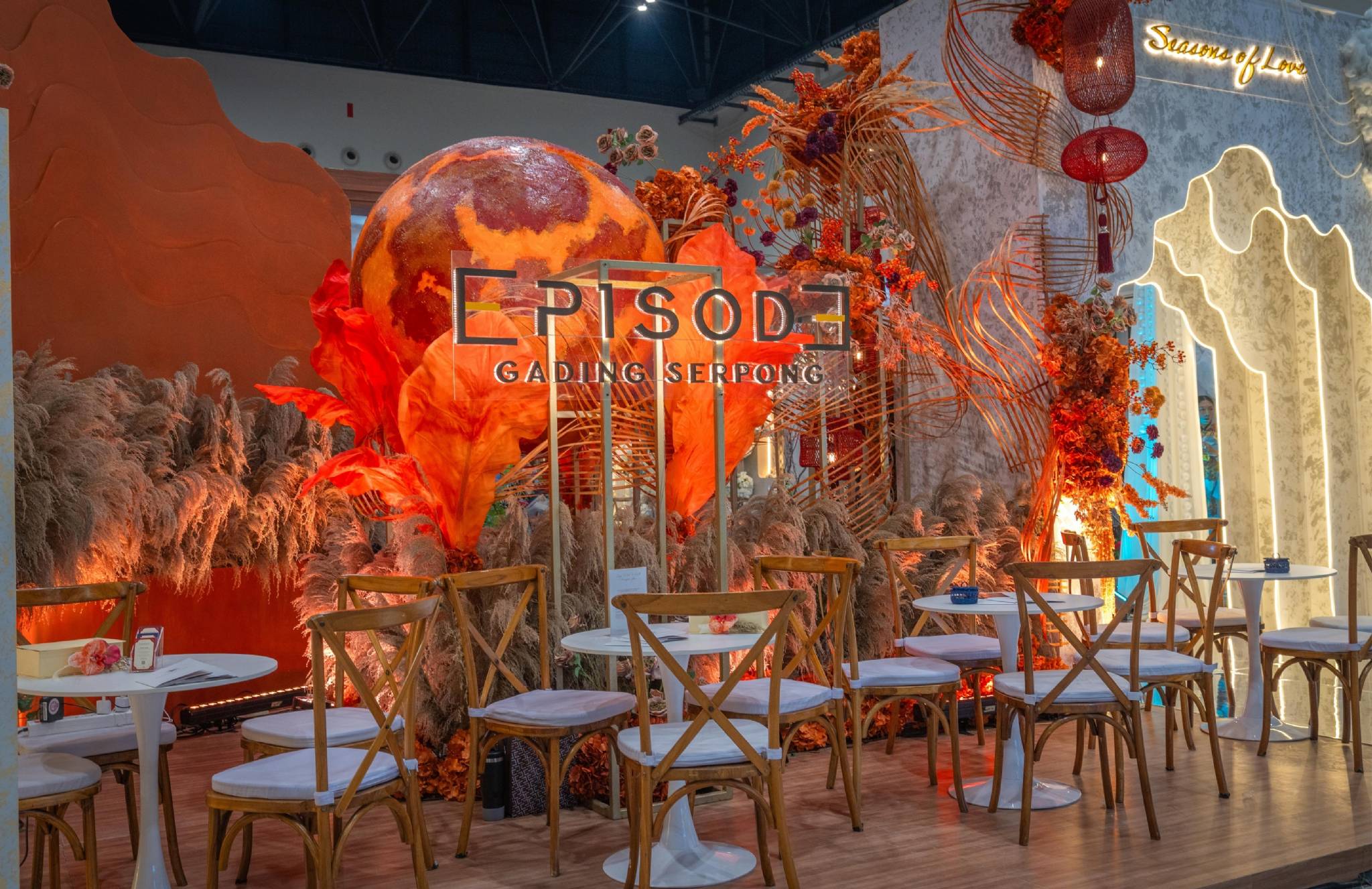 Episode Gading Serpong membawa kesan oriental yang hangat, bunga kering berpadu dengan dekor gerbang megah, menciptakan atmosfer intimate yang tetap mewah.