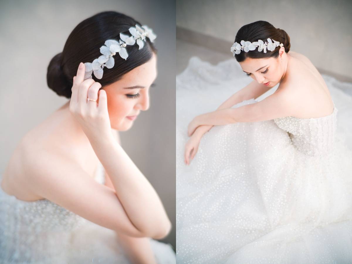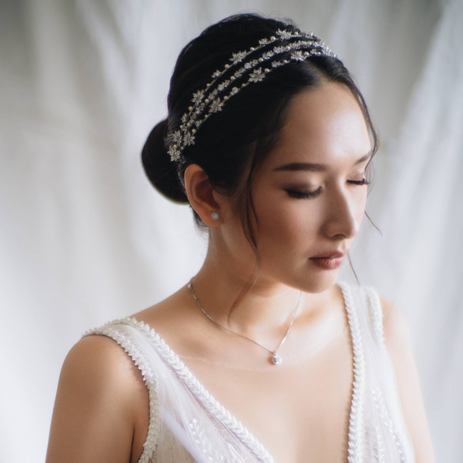 Tampilan klasik & sedikit playful dengan headband berjenis bunga Lunaria yang dominan berwarna putih ini biasanya akan dipilih oleh calon pengantin yang memiliki kepribadian easy going, santai, dan ramah. Tak terlalu banyak menggunakan batu kristal yang bersinar, tipe aksesoris ini memberikan kesan yang manis dan down to earth bagi si pengantin. Fun fact about this headpiece, materialnya terbuat dari recycled plastic, loh!