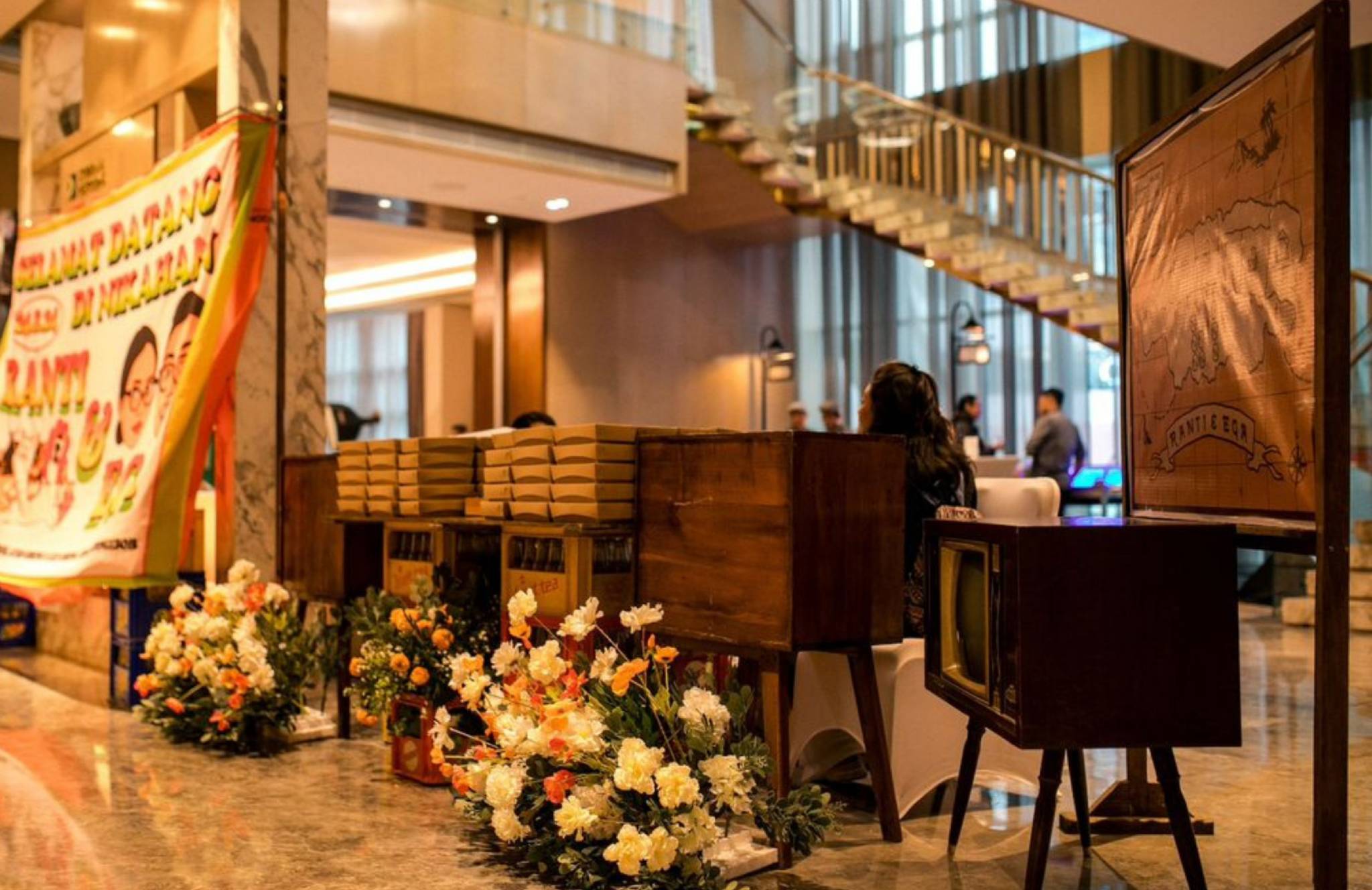 Bayangkan spanduk ala warung pecel lele, susunan krat botol minuman, hingga rencengan minuman sachet yang biasanya kamu lihat di warung pinggir jalan, kini hadir sebagai elemen dekor pernikahan yang estetik dan penuh konsep. Bukan warung biasa, tapi warung yang naik kelas. Tradisional, penuh unsur nostalgia, kuat dari sisi storytelling, namun dieksekusi dengan styling yang matang dan terasa premium. Ini menjadi satu lagi bukti bahwa pernikahan anti-mainstream bukan sekadar beda, tapi juga bisa tampil berkelas.
