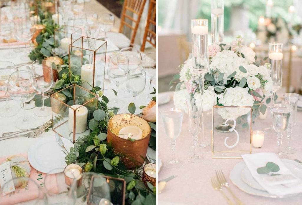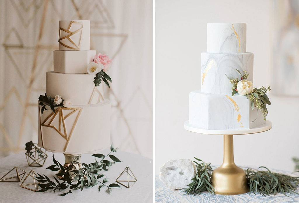 Unsur abstrak atau geometris dapat dipilih salah satunya yang mampu mewakili kedua pengantin. Dari dekorasi dapat disertakan berbagai terrarium berbentuk geometris sebagai lampu gantung maupun diletakan di atas meja melengkapi decor table. Pada wedding cake juga bisa dipadukan dengan terrarium di lapisan tengah, atau lebih memilih menggunakan motif abstrak pada wedding cake menyeimbangi sisi dekorasi yang penuh bunga.