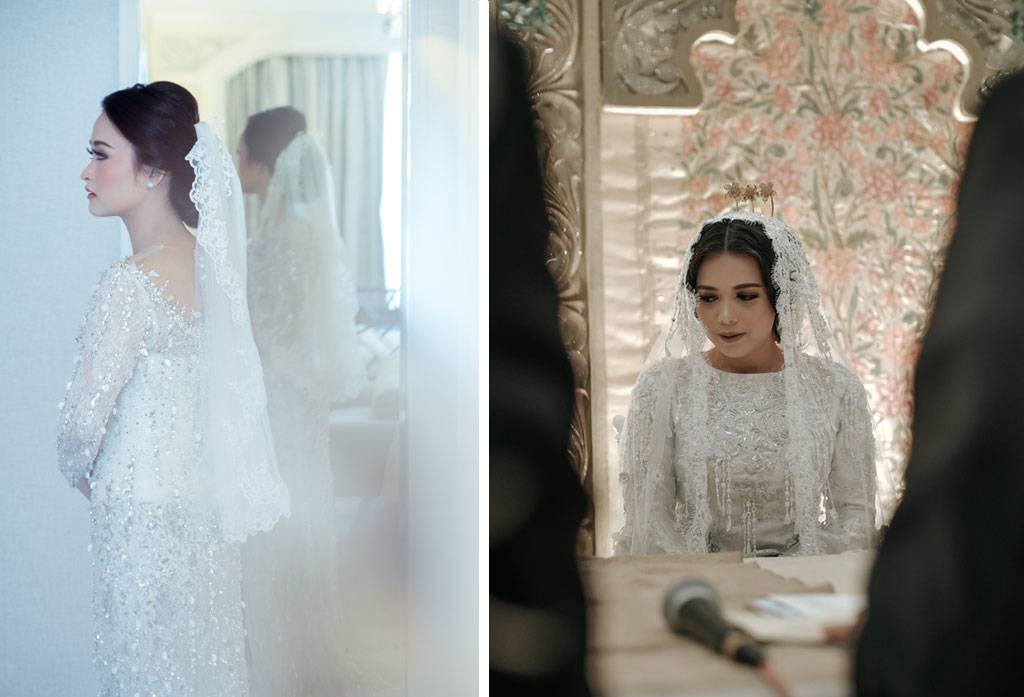 Diadaptasi dari gaun pengantin masa lampau yang selalu hadir tanpa meninggalkan veil-nya, kebaya pun kini telah memiliki veil-nya sendiri. Namun di balik tirai veil yang memberikan kesan suci dan murni, tahukah Anda tentang makna veil itu sendiri? Berdasarkan mitos yang berkembang, veil bukan sekadar penunjang penampilan semata tapi keberadaan veil dulunya bertujuan untuk melindungi serta mengusir roh jahat yang coba mendekati sang pengantin wanita. Tudung itu pun serta merta menyimbolkan dasar kesucian dan kemurnian seorang wanita yang bersih tanpa cela.