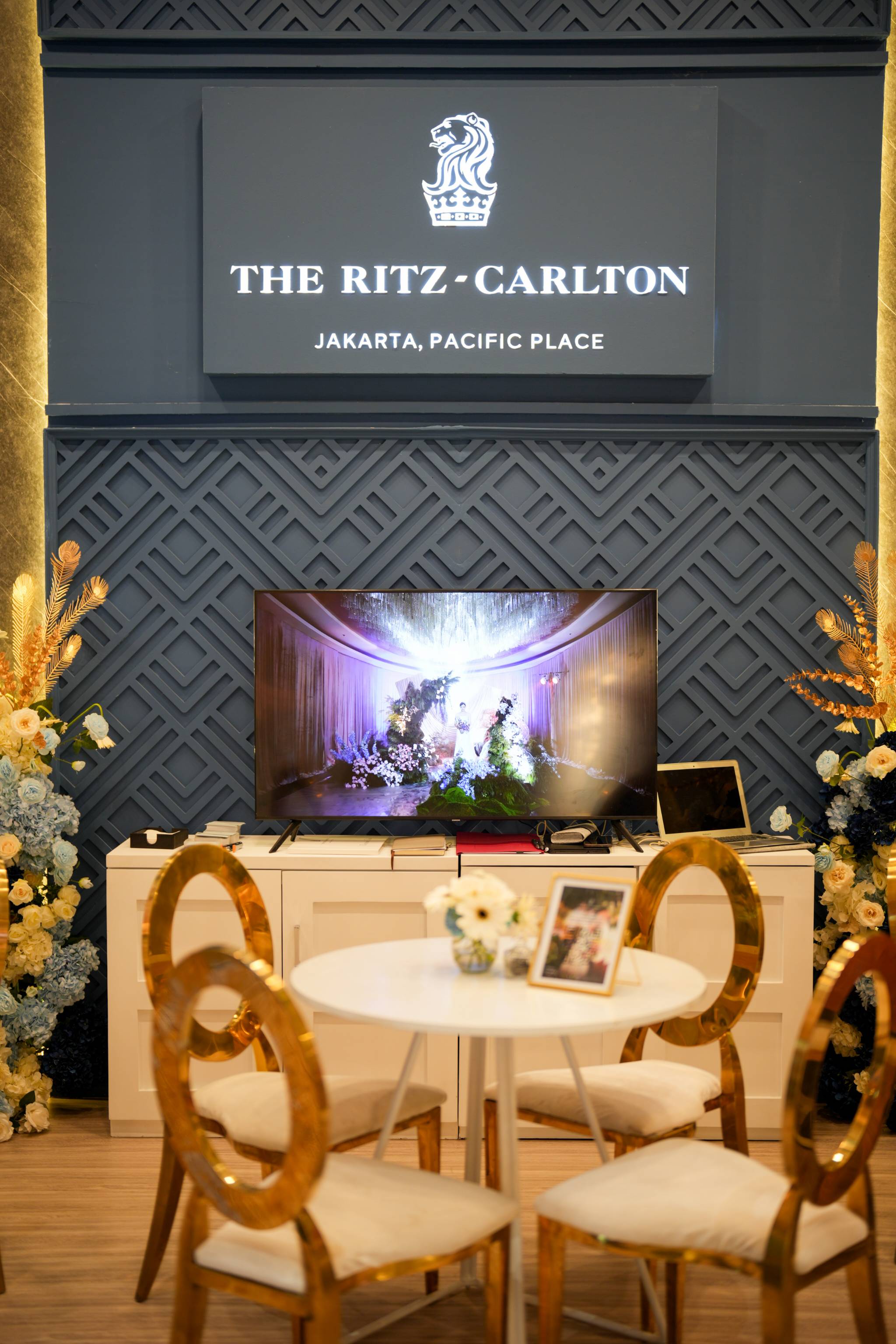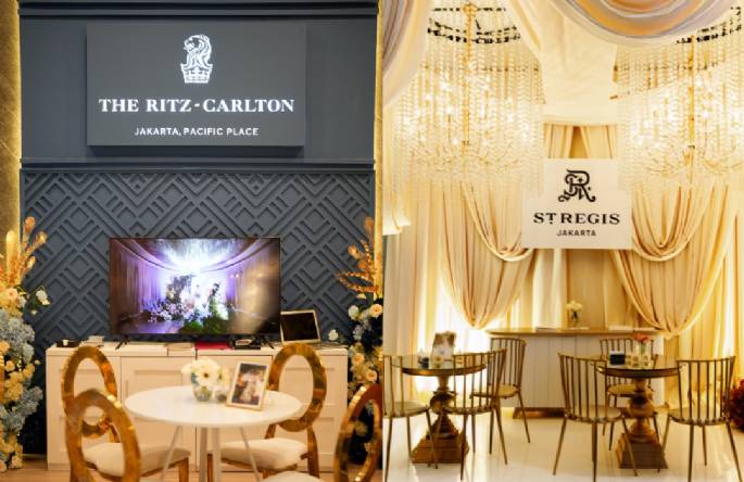 Dengan warna booth biru menawan yang menggambarkan nuansa yang royal dengan Dior chair yang mewah, The Ritz Carlton-Jakarta, Pacific Place siap menyambutmu untuk berdiskusi dan dealing untuk mewujudkan your dream wedding. Konsultasikan apapun kebutuhan yang kamu butuhkan dalam menggelar pernikahan, mulai dari kapasitas tamu hingga pilihan ballroom yang tersedia beserta availability sesuai dengan rencana pernikahanmu. Di sini kamu bisa mendapatkan penawaran spesial yaitu additional room atau room upgrade dari Deluxe ke Suite atau jika kamu bertransaksi untuk ballroom, akan mendapatkan honeymoon di The Ritz-Carlton, Bali selama tiga hari dua malam.