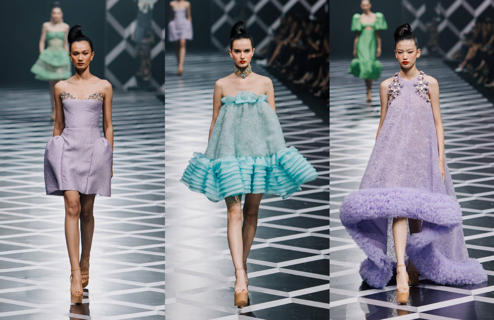 Seba begitu lihai dalam memainkan siluet, terlebih lagi penggabungan imajinasi dan fantasinya sehingga membuahkan tampilan gaun yang eksperimental namun tetap wearable. Terlihat juga permainan fabric digunakan pada koleksi ini, sebut saja silk, Tafetta, Jacquard hingga Tulle yang membuat beberapa gaun jatuh begitu dramatis dengan efek yang menerawang. Pemilihan warna pun begitu lengkap, terlihat beberapa warna serius hingga warna vibran juga lengkap disajikan, diantaranya oranye, merah muda, hijau lime, tangerine, earthy tone, nude, gold hingga hitam. Terdapat juga beberapa motif yang meneguhkan label ini yang selalu menawarkan keglamoran, seperti Tartan, bunga, geometrikal hingga pola dari lampu bola disko.