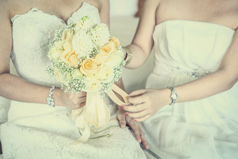 Gaun Pengantin – Untuk gaun pengantin yang menjadi pusat perhatian para tamu, Yossi pun tak mau asal memilih vendor. Ritz Taipei dengan gaun-gaun pilihannya memikat Yossi untuk memilih salah satu di antaranya. Layanan yang lengkap di Ritz Taipei, memudahkan Yossi untuk sekalian memilih vendor ini untuk menangani make up-nya di Hari H, serta gaun para pendamping wanitanya di tempat yang sama. Gaun pengiring pengantin disesuaikan dengan warna putih dan oranye yang digunakan sebagai warna yang mendominasi pesta pernikahan ini.