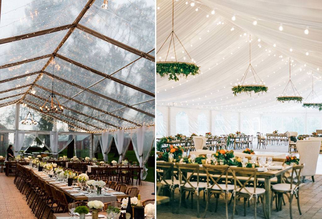 Bukan hanya berfungsi ketika turun hujan, apabila menikah di siang hari yang panas. Tenda sangat berguna untuk berteduh agar tidak kehujanan dan kepanasan. Bicarakan dengan dekorator agar tenda terpasang tanpa mengurangi estetika dekorasi. Tenda pun ada banyak macamnya yang dapat dipilih dari yang berwarna transparan bening sehingga tetap tampak indah dipandang. Selain itu ada tenda carnival yang biasa dipakai saat ada karnaval yang identik dengan bentuknya. Tidak terkesan murahan, dekorasi dapat dikombinasikan dengan berbagai tema dekorasi, rustic, glamour, greenery, boho-chic dan lainnya.