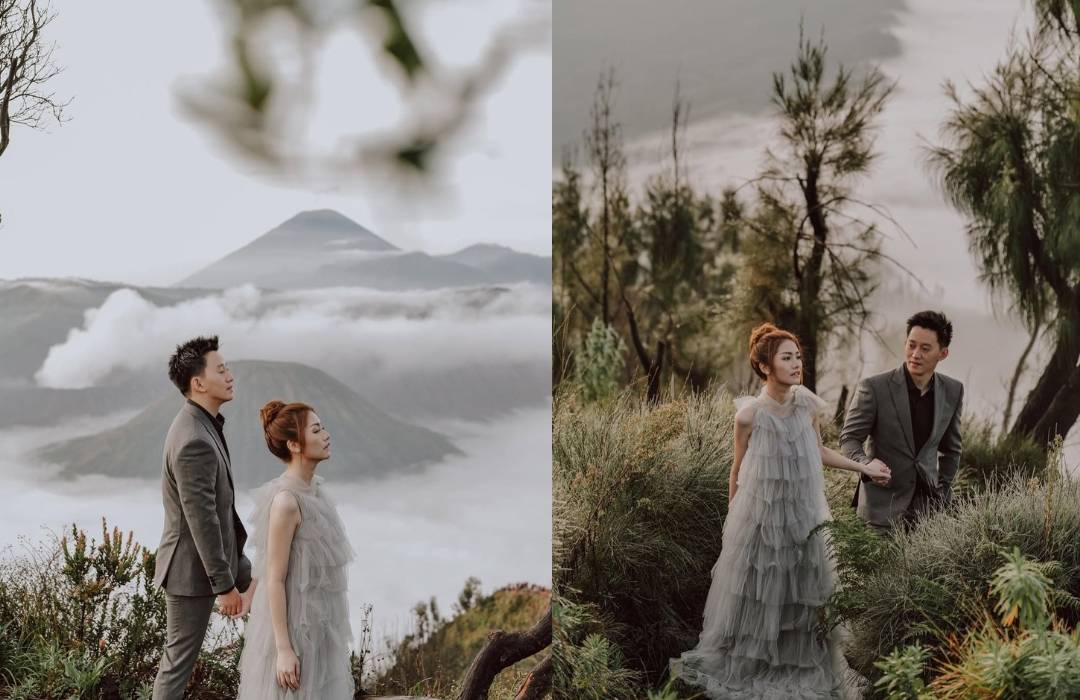 Gunung Bromo menawarkan pemandangan yang luar biasa dengan atmosfer magis yang tak mudah ditemukan di tempat lain. Dengan latar belakang landscape vulkanik yang dramatis, kamu dan pasangan dapat berpose di tengah padang pasir luas atau dikelilingi pasir hitam dan kawah Bromo yang mengeluarkan asap tipis, menciptakan kesan yang berani dan penuh petualangan.