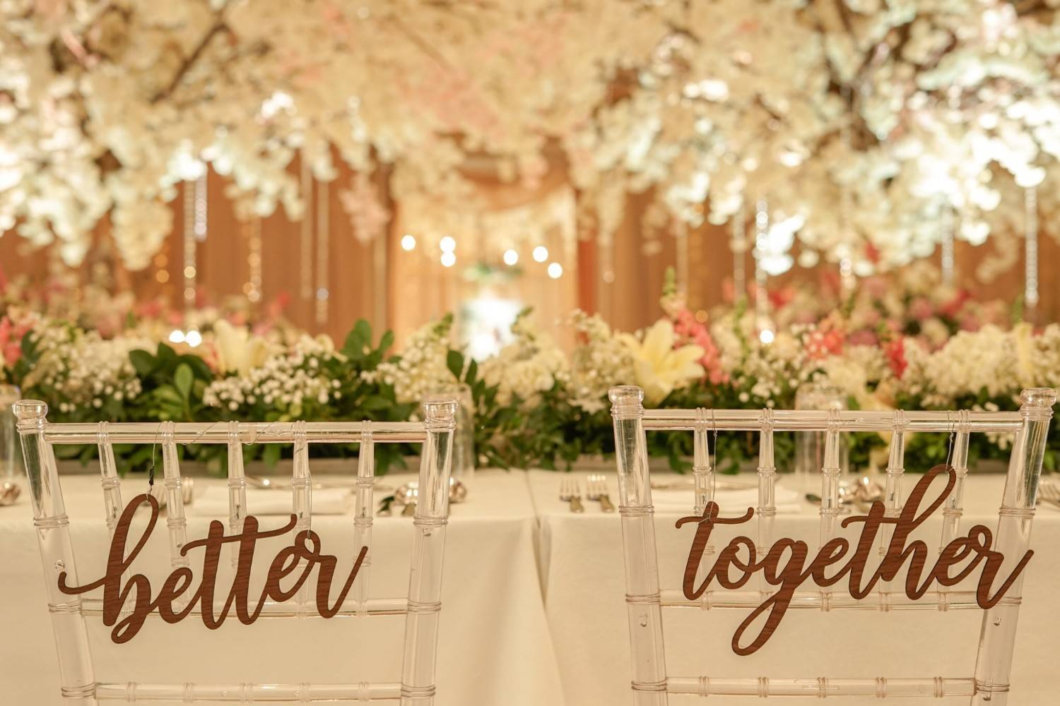 Tidak dapat sepenuhnya disebutkan sebagai stationery pada pesta pernikahan, tapi sign nama di kursi yang akan diduduki oleh Anda dan pasangan juga dapat dipikirkan sebagai elemen dekorasi yang akan mempercantik pesta Anda. Biasanya yang akan digantung adalah nama Anda dan pasangan, dua kata yang membangkitkan semangat, atau hanya kata ‘Bride’ dan ‘Groom’ saja.