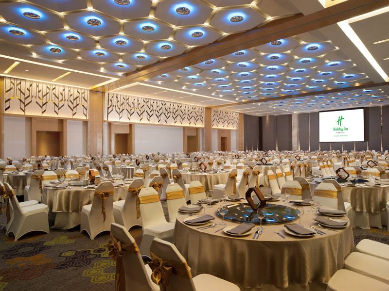 Salah satu cara mewujudkan pernikahan impian tersebut, Anda bisa menikah di gedung megah Angsana Ballroom dengan luas 1.374 sqm yang disediakan Holiday Inn Jakarta Kemayoran. Gedung ini mampu menampung tamu sebanyak 1.800 orang untuk acara berkonsep standing party atau 70 round table untuk acara berkonsep sitting party. Angsana Ballroom sendiri bisa dibagi menjadi 3 ballroom terpisah dengan masing-masing berkapasitas 300 orang.