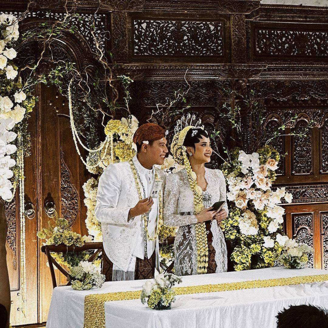 Nino dan Dhabita tampil menawan dengan busana adat Jawa, Nino dengan beskap putihnya dan Dhabita dengan paes dan kebaya dengan warna yang sama. Keduanya tampak sangat bahagia saat menamatkan prosesi akad.