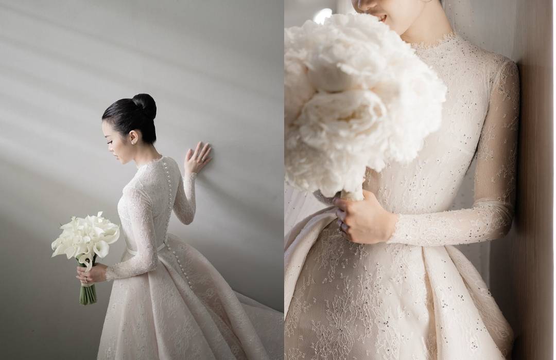 Untuk para calon pengantin wanita, salah satu opsi untuk attire pernikahan adalah long sleeve gown. Gaun ini melahirkan penampilan yang cantik dan tertutup sehingga cocok untuk pemberkatan hingga resepsi nantinya. Detail embroidery juga akan semakin menambah keindahan auramu sebagai “the star of the show”.