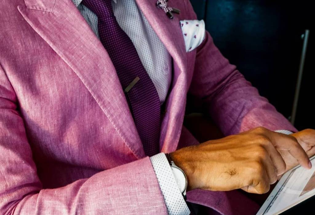 Pada foto ini, Jas-Ku menyarankan Anda untuk memilih dasi yang warna dan coraknya sesuai dengan kemeja yang dikenakan. Untuk lebih mudah, Anda bisa mengenakan setelan kemeja berwarna putih karena warna tersebut cocok dipadukan dengan dasi berwarna apapun. Yang paling praktis, pilih dasi dengan warna yang sama dengan jas untuk memperkuat statement warna yang Anda pilih.
