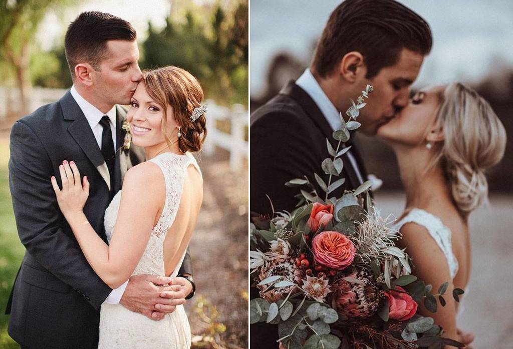 Pose berciuman di hadapan para tamu selalu menjadi andalan pasangan pengantin dan belum pernah gagal. Selalu mampu memperlihatkan kemesraan antar sepasang manusia yang baru saja meresmikan hubungan cintanya di hadapan Tuhan dan keluarga besar. Atau bila Anda dan pasangan tak percaya diri dengan pose ini, cukup berdiri berhadapan, minta pasangan merengkuh pinggang dan mencium kening Anda, rasakan dadanya yang berdegup bahagia. Sebuah momen yang begitu indah yang akan ditangkap oleh kamera sang fotografer.