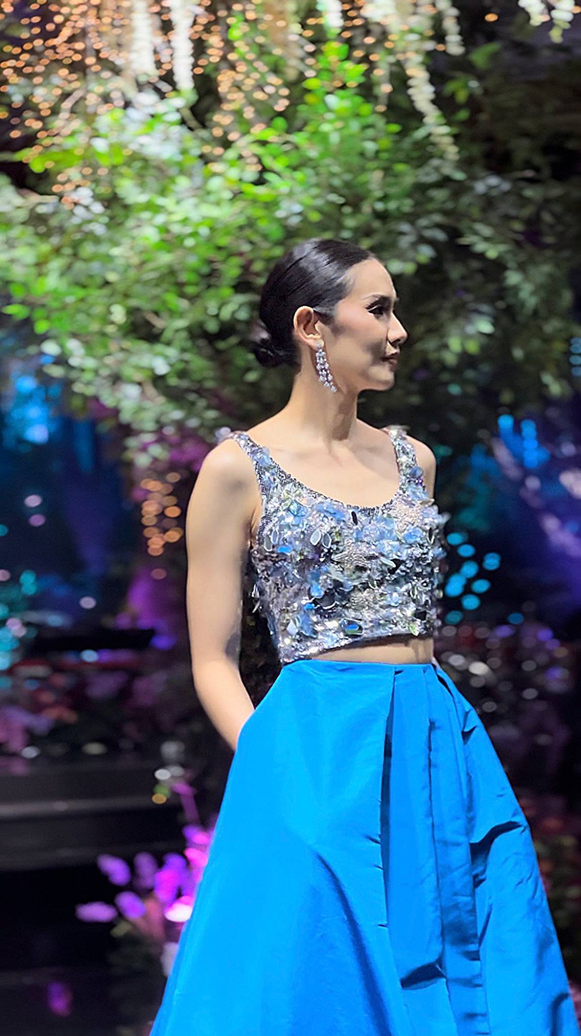 Runaway kali ini, The Proposal Bridal bermain dengan wedding gown dengan kesan mewah, feminin, dan elegan dengan dominasi warna putih yang memancarkan kelembutan seorang pengantin wanita. Sedangkan untuk evening gown, The Proposal Bridal memasang nuansa yang lebih fun dengan warna biru dan silver.