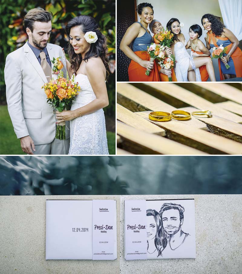 Wedding Date 12 April 2014 | Holy matrimony & Wedding Venue Villa Uma Nina, Jimbaran-Bali | Wedding Organizer Bali Chemistry Wedding | D-day Photographer Michael Timothy Photoworks | Videographer Baskoro Schnider | Make-up Artist Christina Octavia (Christine Salon - Jakarta) | Wedding Gown Adelia Chandra | Bridesmaid Gown Bangs by Regina | Hand Bouquet Jonquilla Florist & Décor | Wedding Cake Cista Nayoma Cakes | Catering Lumbung Catering | Decoration Jonquilla Florist & Décor | Invitation Card The Wallart | Souvenir Tote Bag Presidan, Designed by Presi (bride) | MC Rani Hardjadinata | Entertainment Davina Raja, Mian Meuthia, Jeko & Sandy Winarta Band DJ Goodgrip (NL), Atu Pattimahu (Los Bangeles) Motor Race Indocustom (ICM)