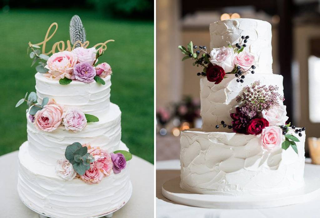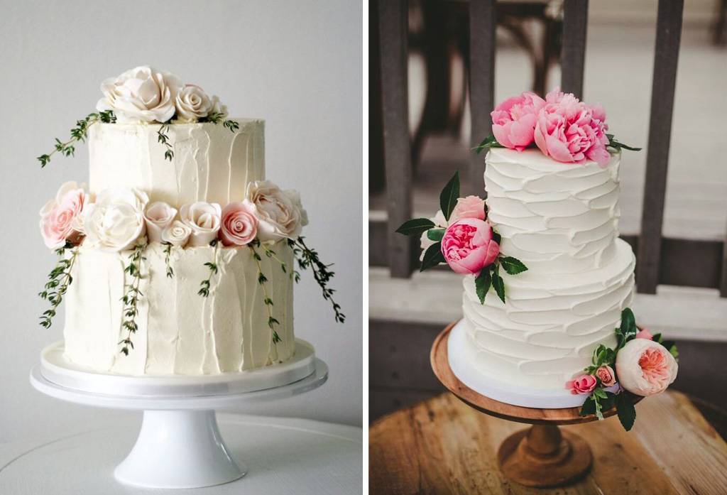 Bertekstur abstrak bukan berarti berantakan dan tidak memiliki nilai estetika. Contohnya seperti kedua wedding cake di atas, sengaja dibuat sedikit tidak beraturan kedua wedding cake itu berhasil menciptakan coraknya sendiri yang tampak unik. Ditambah dengan hadirnya bunga yang semakin mempercantik wedding cake.
