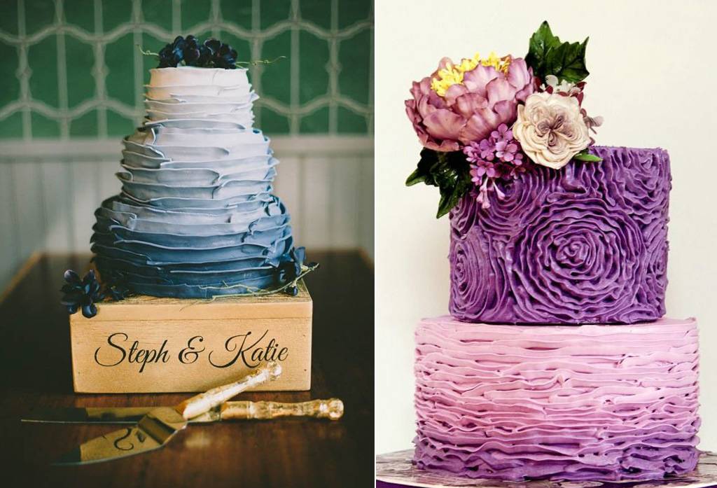 Tidak hanya ditemui pada rok, ruffle juga dapat diaplikasikan pada cake. Tidak hanya dalam putih polos, ombre juga dapat menjadi sentuhan yang tepat untuk memberi warna yang sepadan dengan tema. Variasi ruffle lainnya juga dapat dibentuk semacam bunga yang dapat dikombinasikan dengan bentuk lainnya agar lebih cantik.