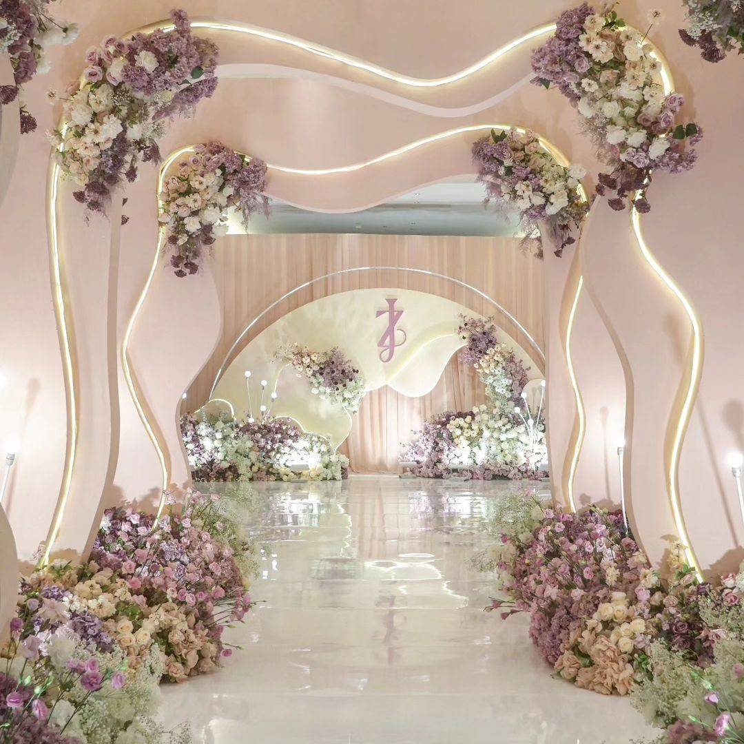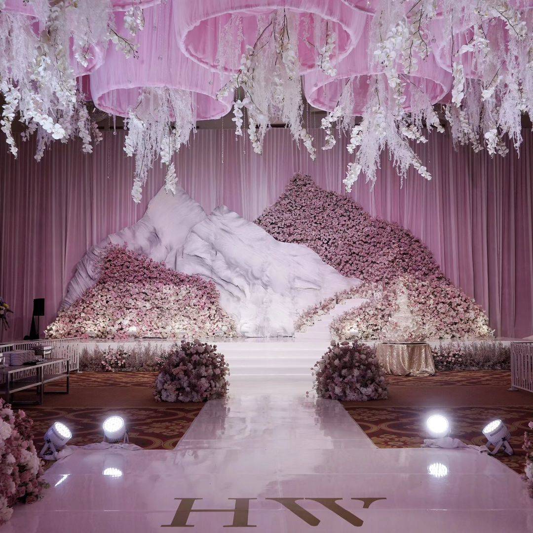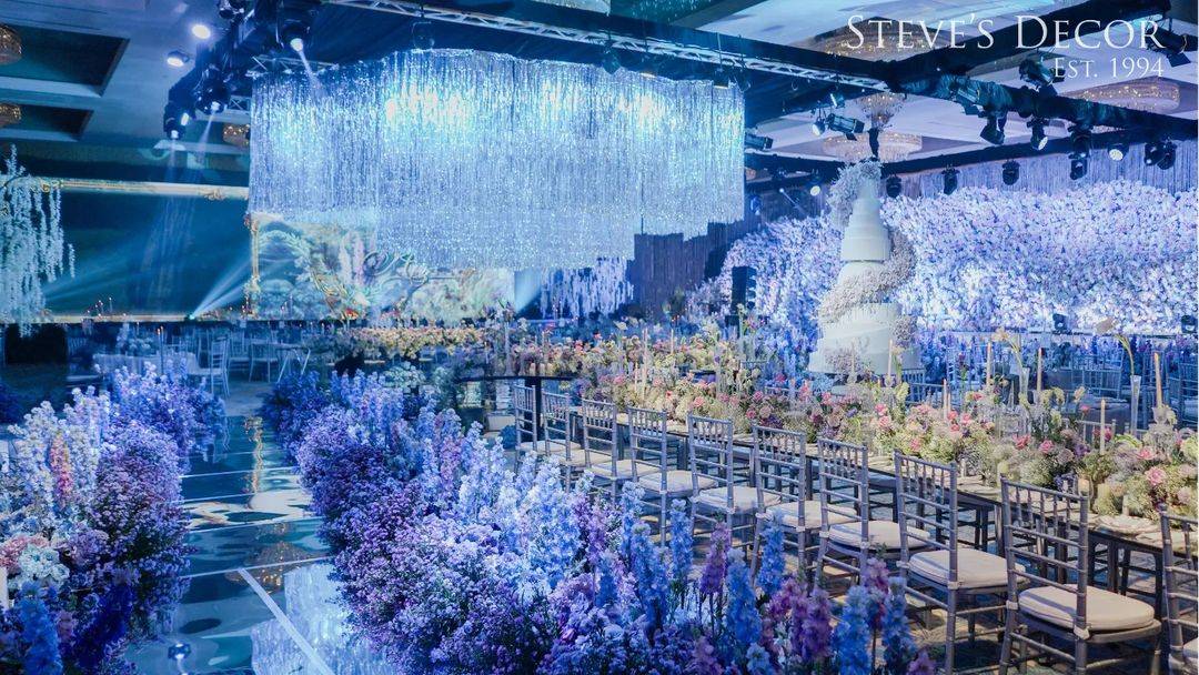Warna ungu digambarkan sebagai warna empati, kemewahan, dan keajaiban yang mana dibutuhkan untuk setiap pasangan yang akan melangsungkan acara pernikahan dengan pasangan sehidup semati. Penempatan purple flowers bisa kamu sesuaikan dengan bentuk venue. Kamu bisa hias instalasi dome di smaller center stage, di bagian kanan atau kiri jalur masuk tamu ke area resepsi atau aisle menuju panggung, sebagai hiasan utama main stage atau chandelier.