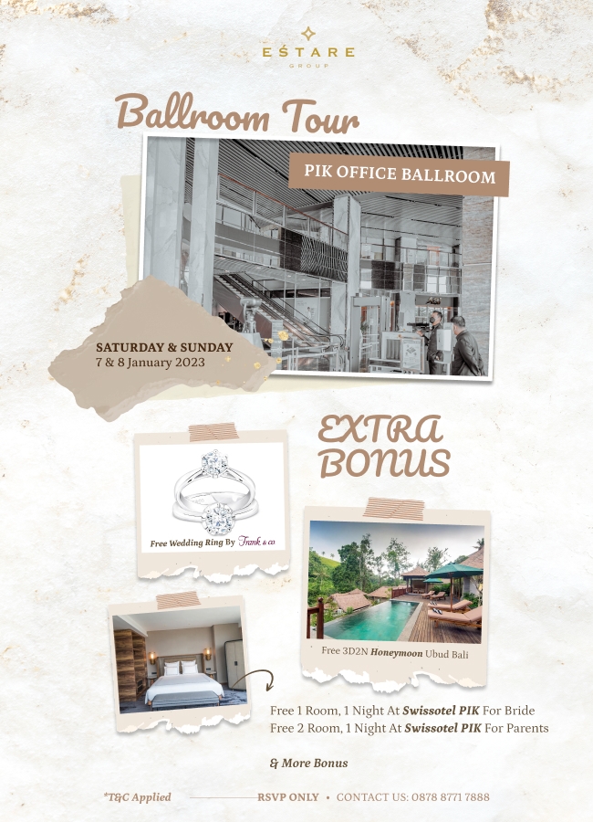 Hubungi Estare paket pernikahan kamu, dengan banyak paket yang sudah all in, dan bonus yang juga gak kalah banyak!