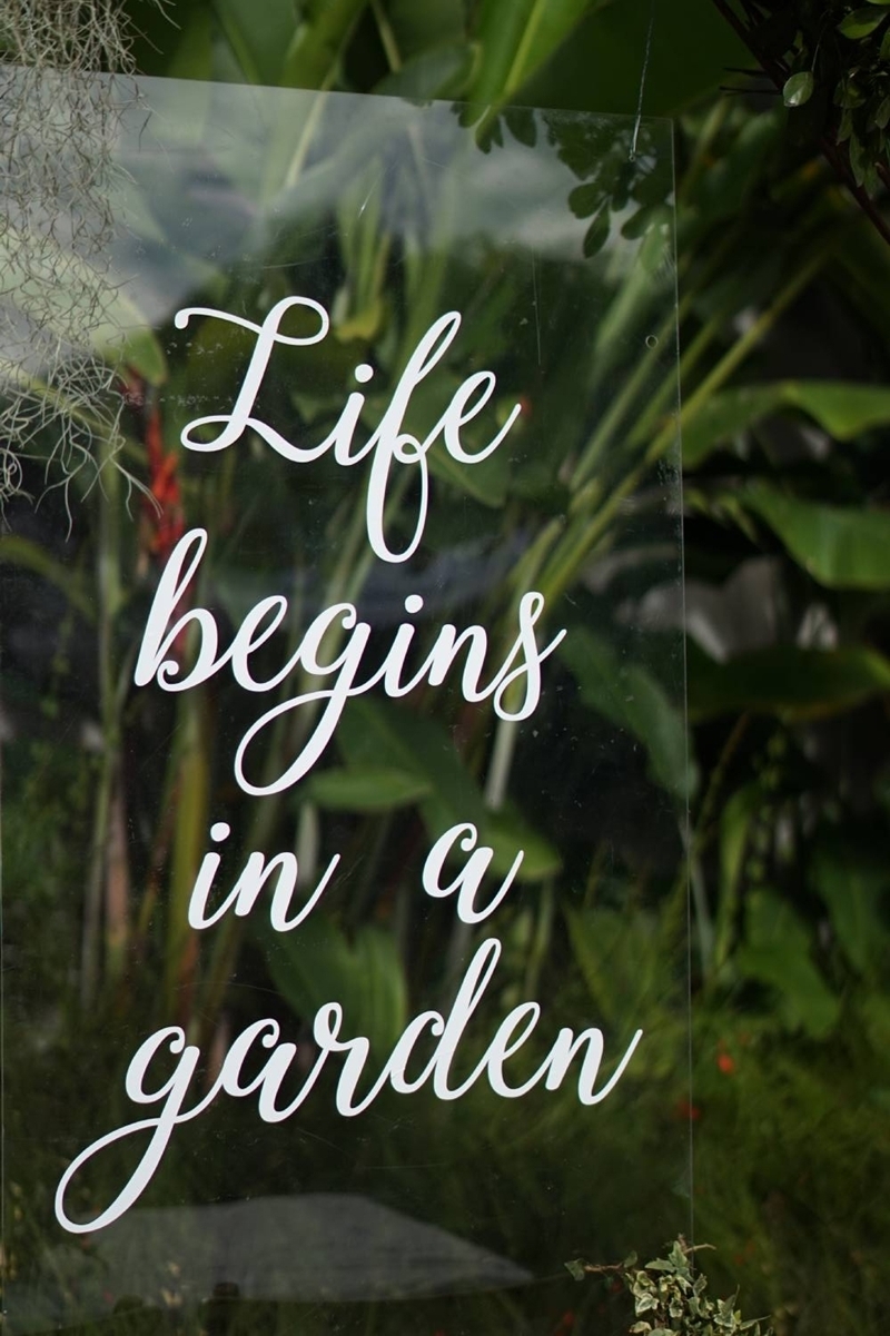 A simple garden wedding of Lucky and Dani that is just one of a kind. Since their wedding was held in a garden, we picked this theme. The phrase came out of the blue but fit this ceremony perfectly. We love the details. The acrylic signage really stood out and so became such a strong vocal point of the lush green surrounding.