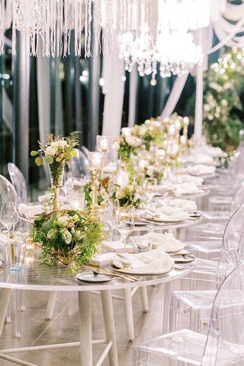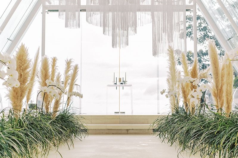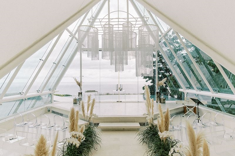 Hosted at Tirtha’s Glass House and the crystal-like Chapel, Nadya and Sherwood’s wedding day exuded emerald green, thanks to the natural beauty surrounding them, peppered by shades of blue.