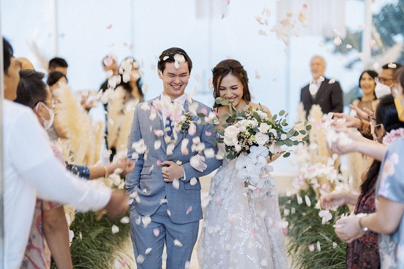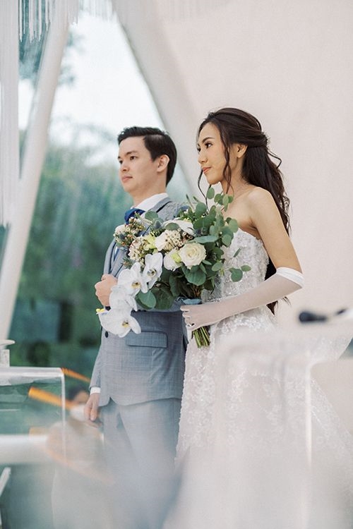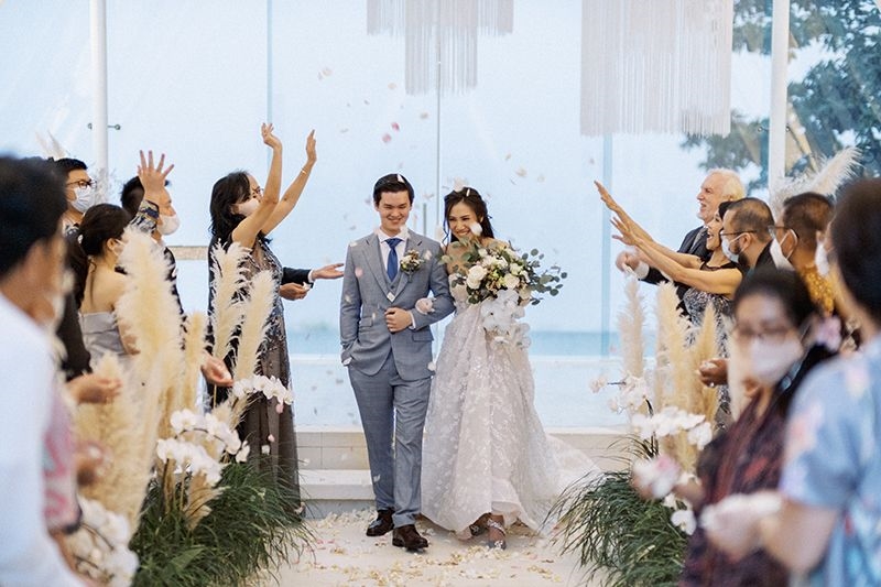 The bride’s stunning bouquet arrangement by Hanamizuki also played a role in jazzing up the afternoon with its fine, dainty colors from the blue orchids and white roses.