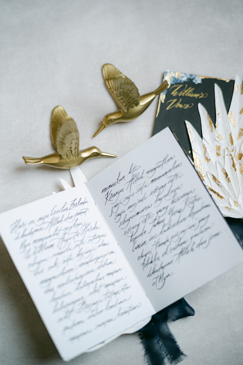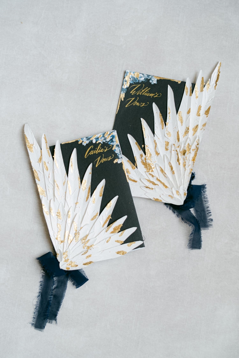 A Pair of wing in white, as a symbol of unity in every step and every devision in their phase of life. A wedding keepsake for William & Cecilia